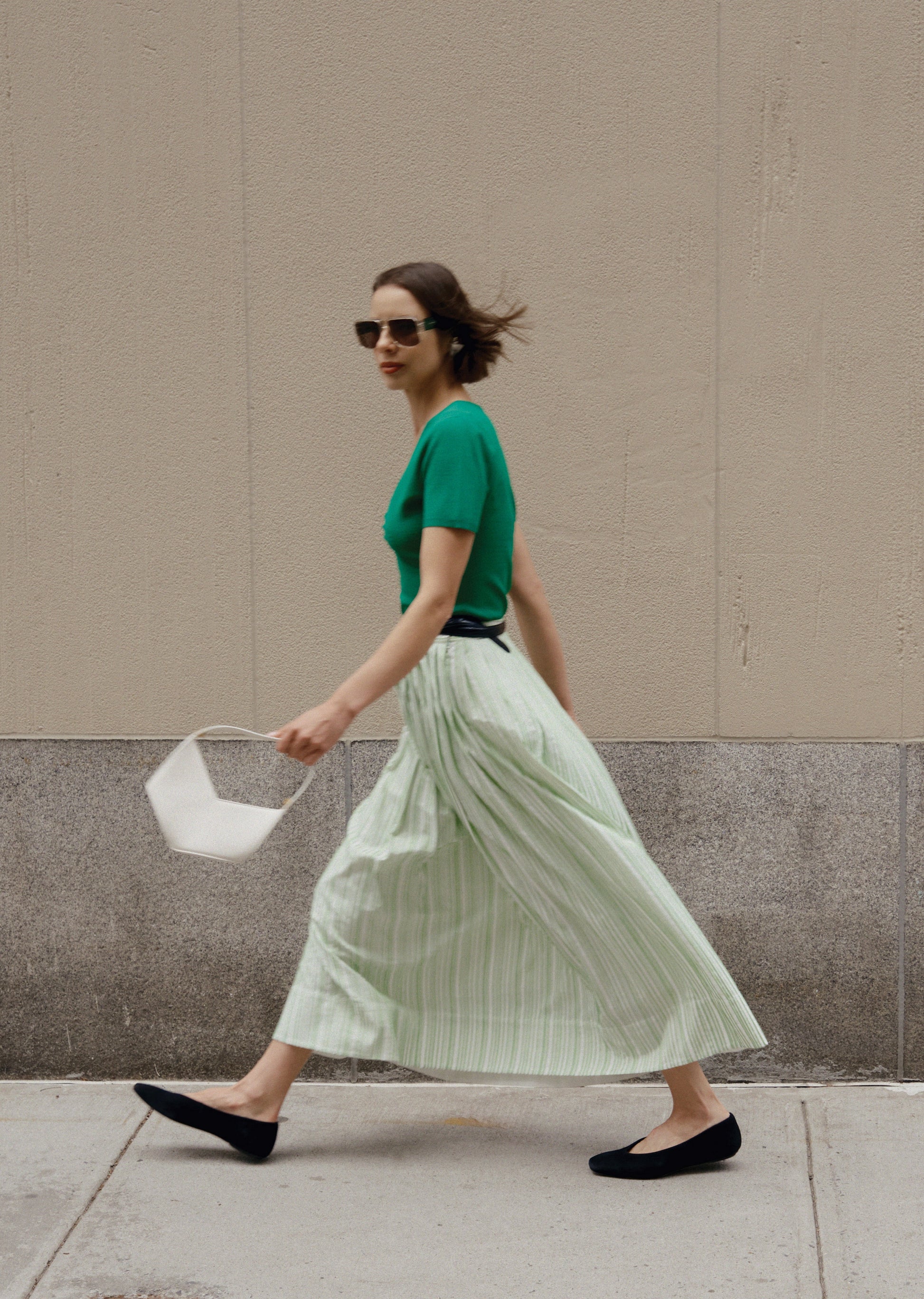 Alexia Pintuck Stripe Shirting Pleated Maxi Skirt - Kelly Green-White
