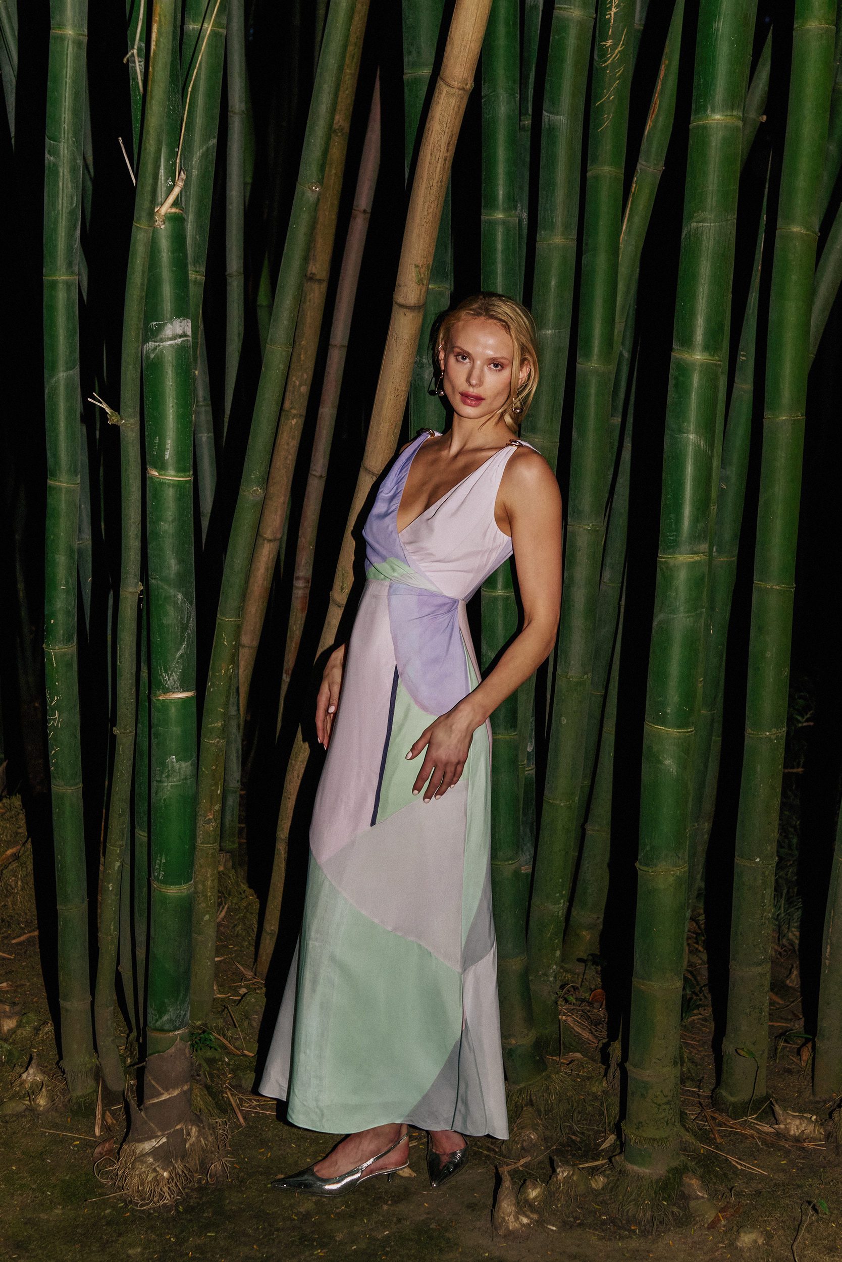 The Gabrielle dress is an elegant statement maxi, crafted with viscose for a soft and luxurious feel. Features a surplice neckline, knotted straps and two detachable silver rings on each shoulder.